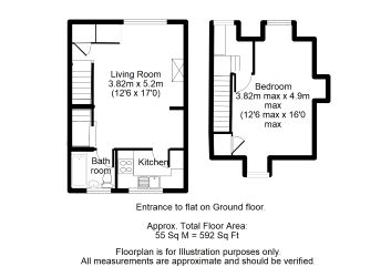 The property comprises a first and second floor one bedroom split level flat situated within a Grade II Listed mid terrace building arranged over ground and two upper floors.