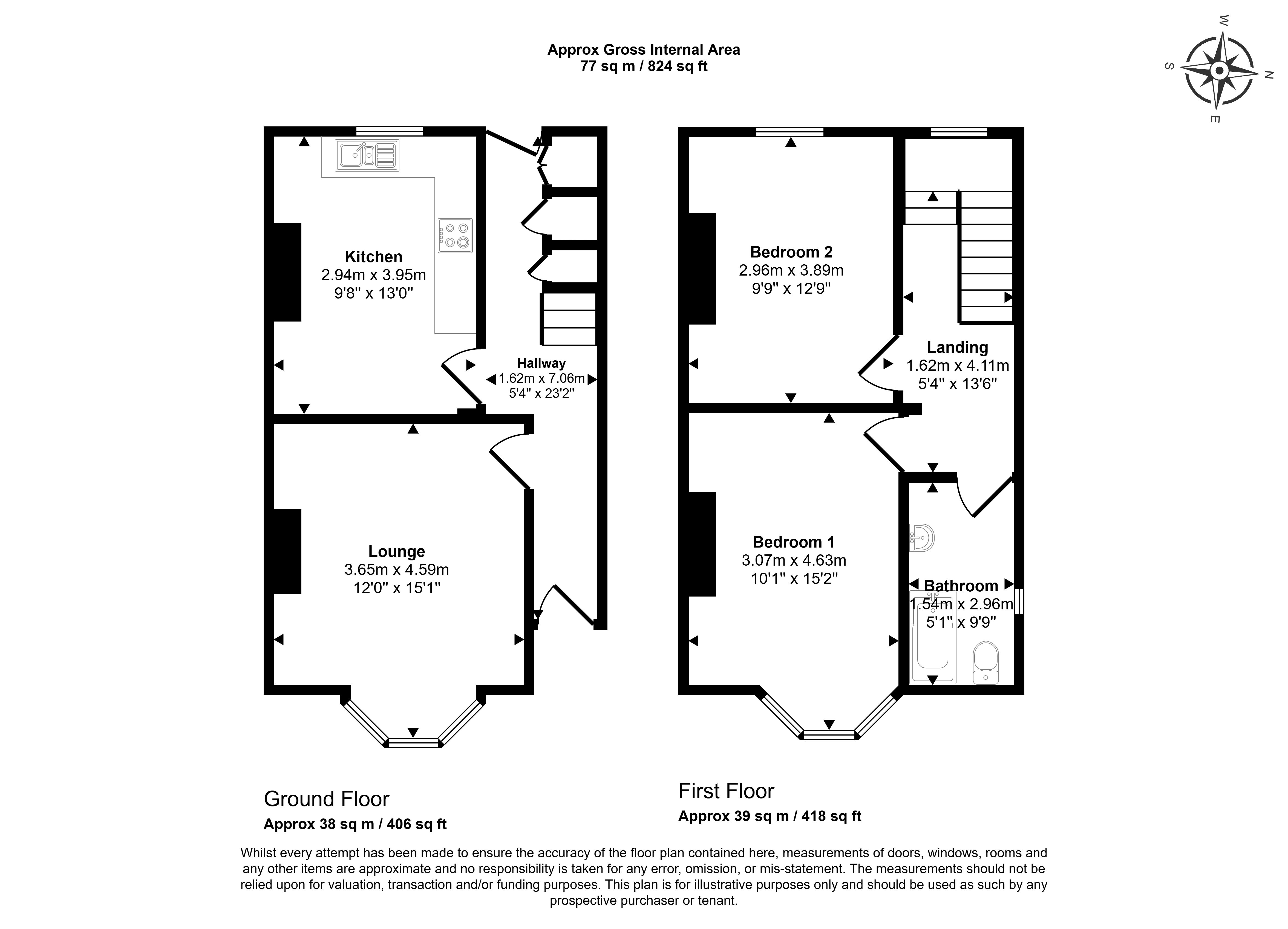 The property comprises a two bedroom semi detached house arranged over ground and first floors.